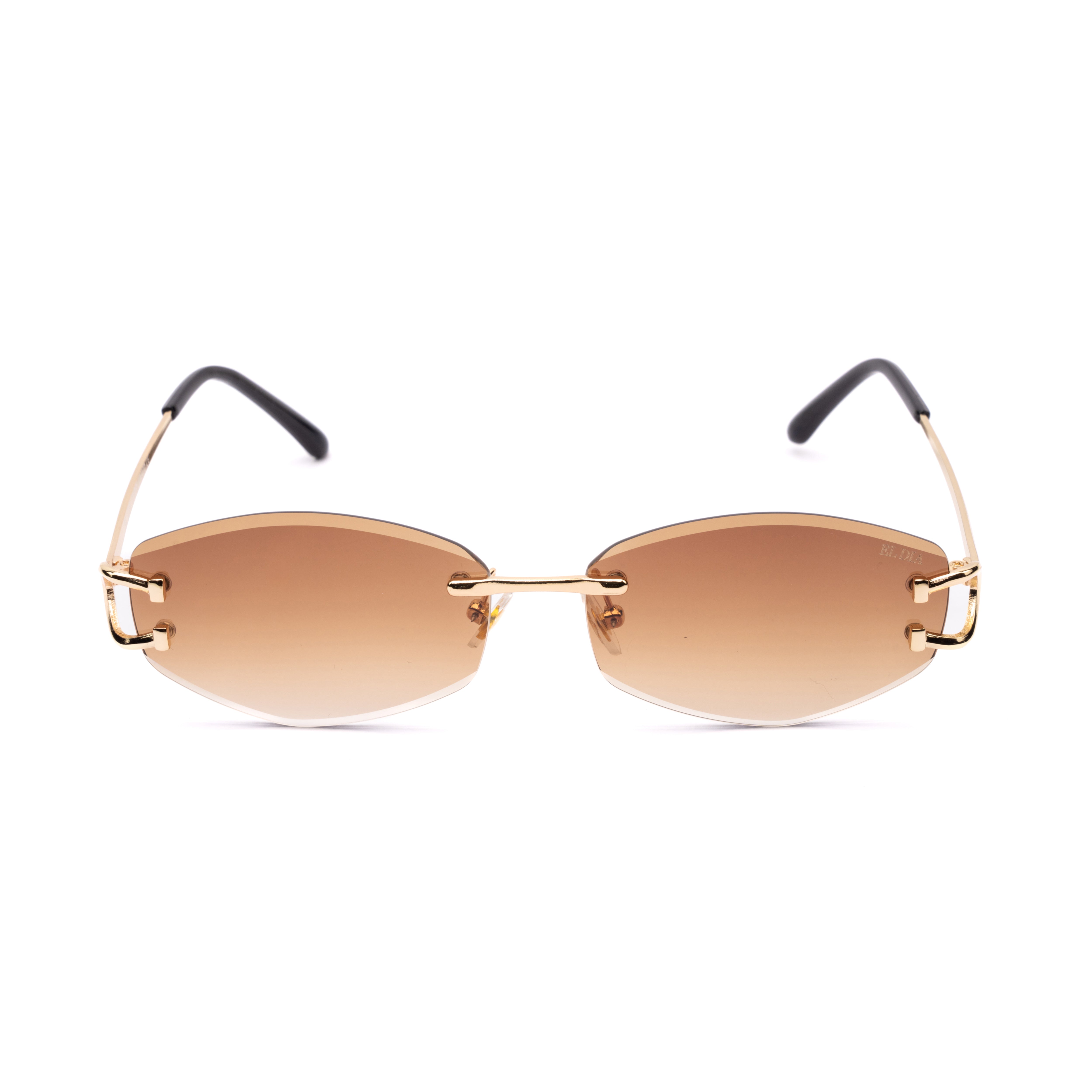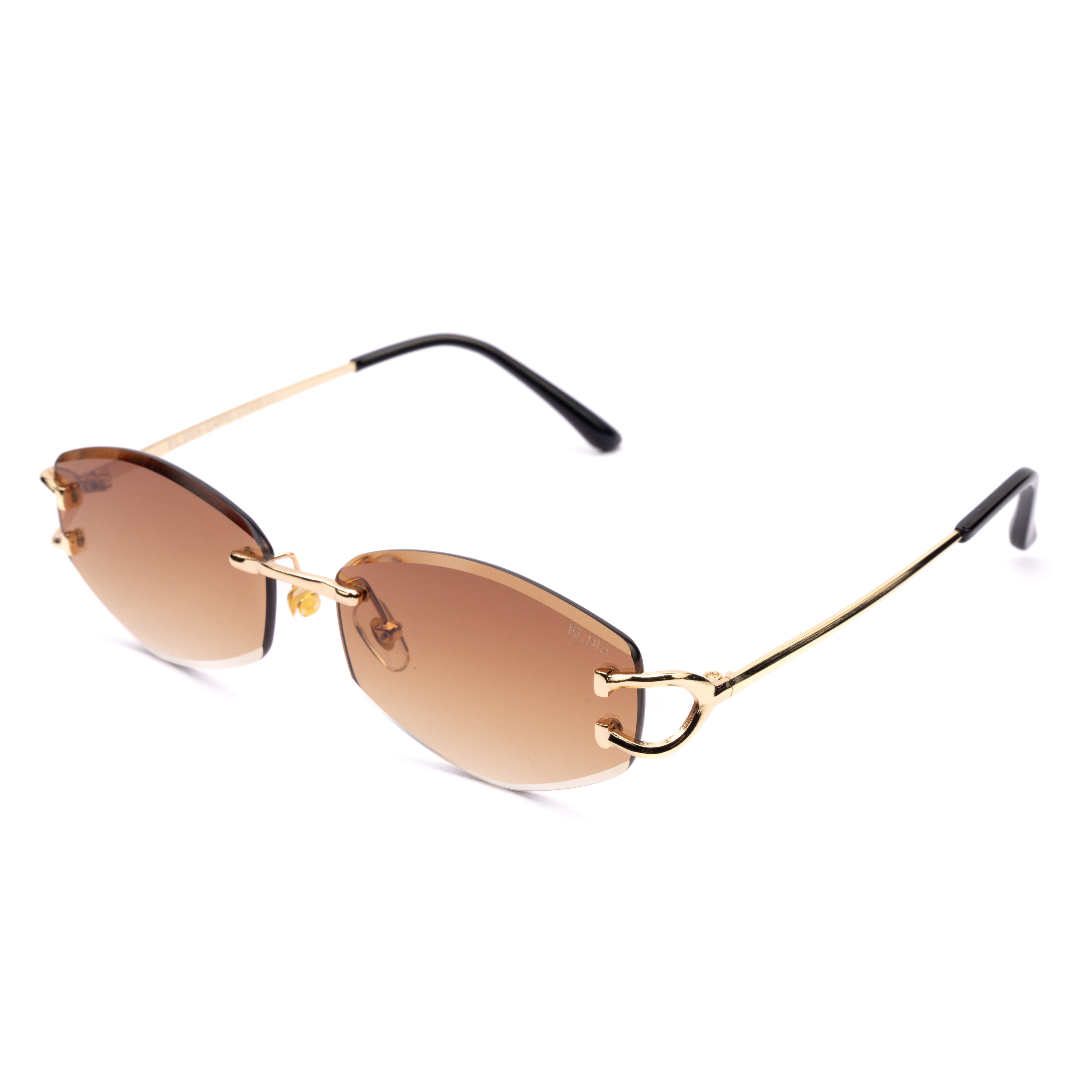 Un model rafinat cu lentile maro gradient și design fără ramă, pentru un look elegant și feminin